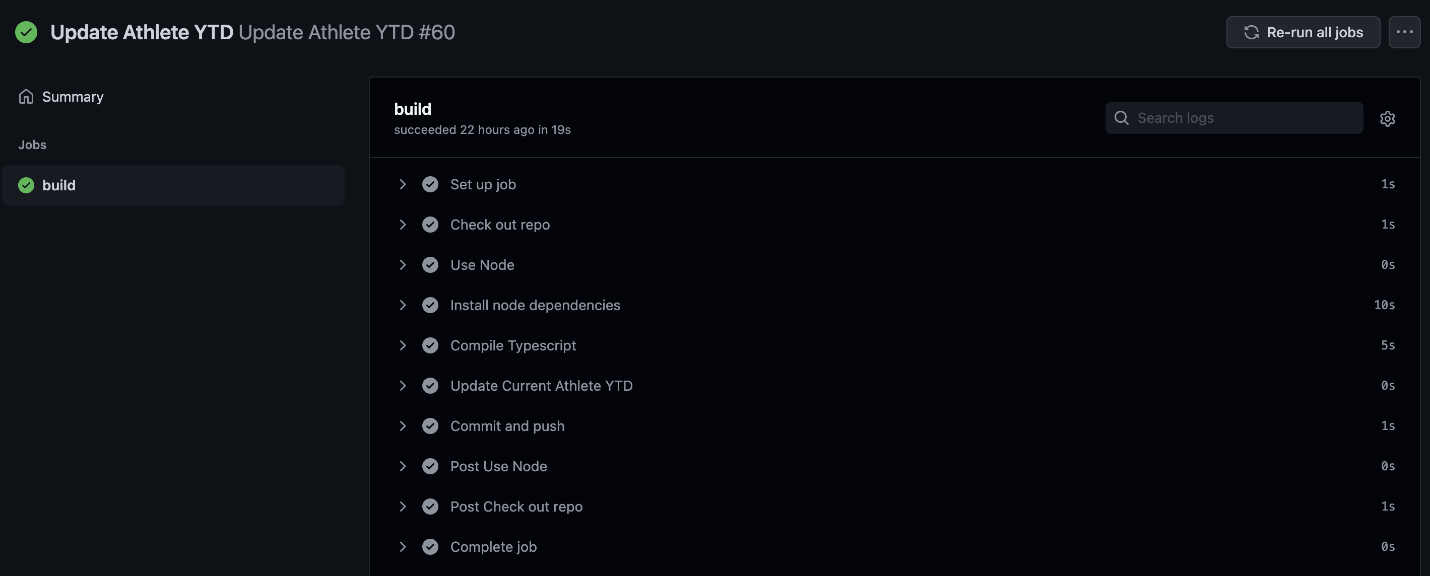 With this in place, we now have JSON files updated for each athlete, containing their current Year-To-Date stats.
