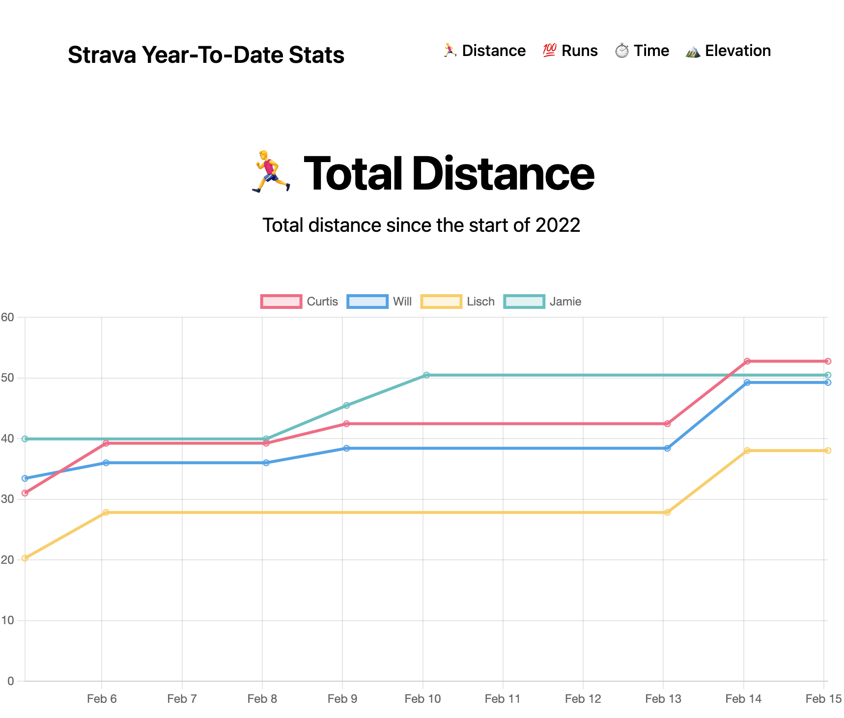 So I created an application which will retrieve our Strava stats, and periodically update this information on a webpage.